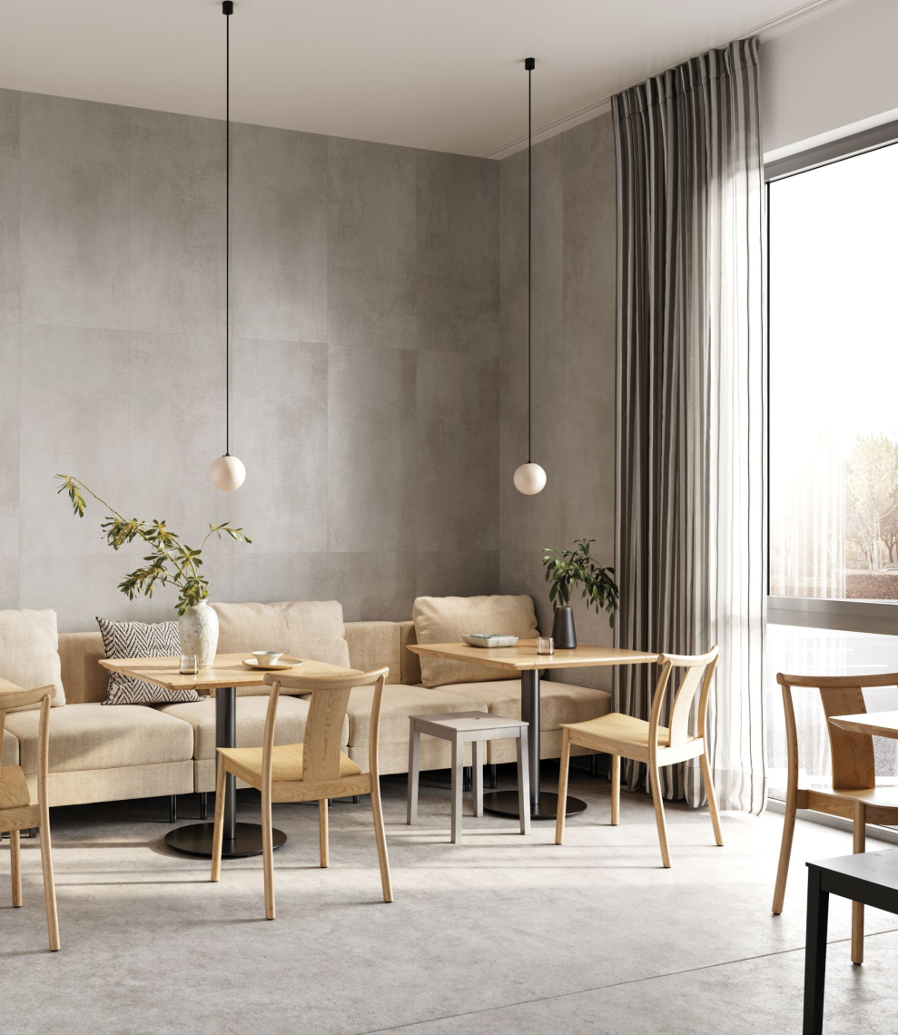 חיפוי קיר מינרלי Idevo Smoky Concrete – דרך מהירה לעצב מחדש את הבית ולהעניק לו אופי תעשייתי עכשווי. המשטח מדמה את המרקם והצבע של בטון חשוף, ליצירת גימור עמיד, אסתטי ומלא אופי.