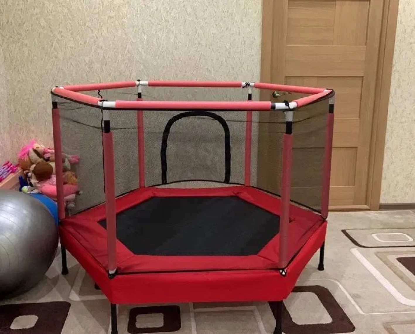 טרמפולינת קפיצים לילדים בצורת משושה אדומה 160 ס"מ