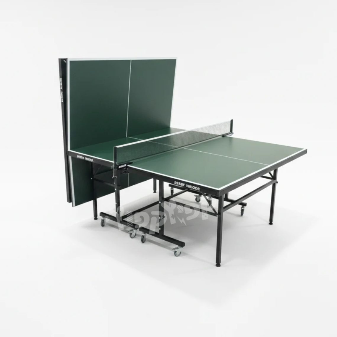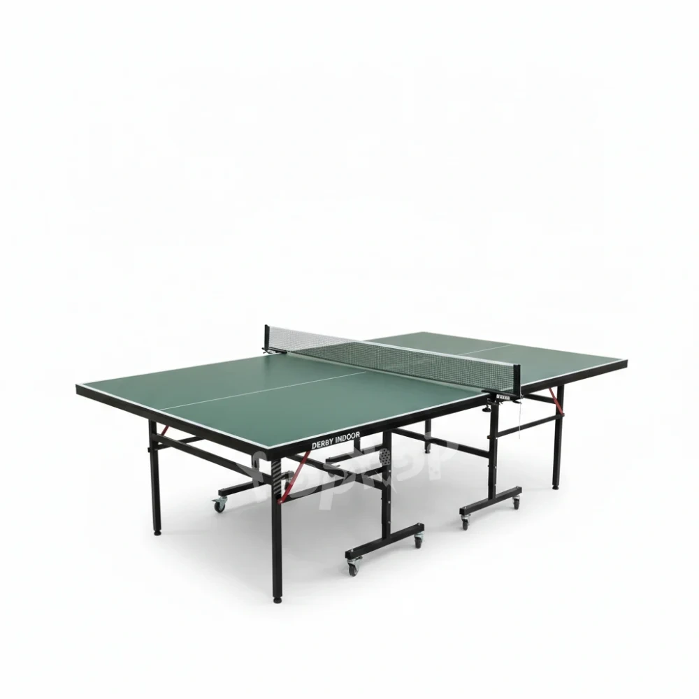 שולחן פינג פונג איכותי לשימוש ביתי בצבע ירוק, בגודל מלא, מבית DERBY. מתאים לשימוש פנים ומספק חוויית משחק מהנה, מקצועית ונוחה לכל המשפחה.
