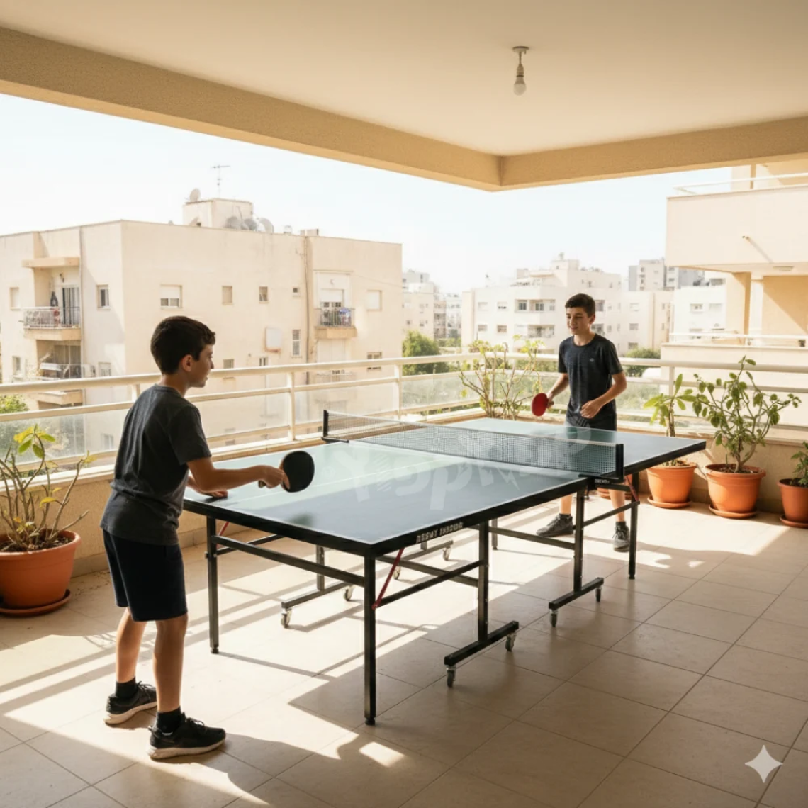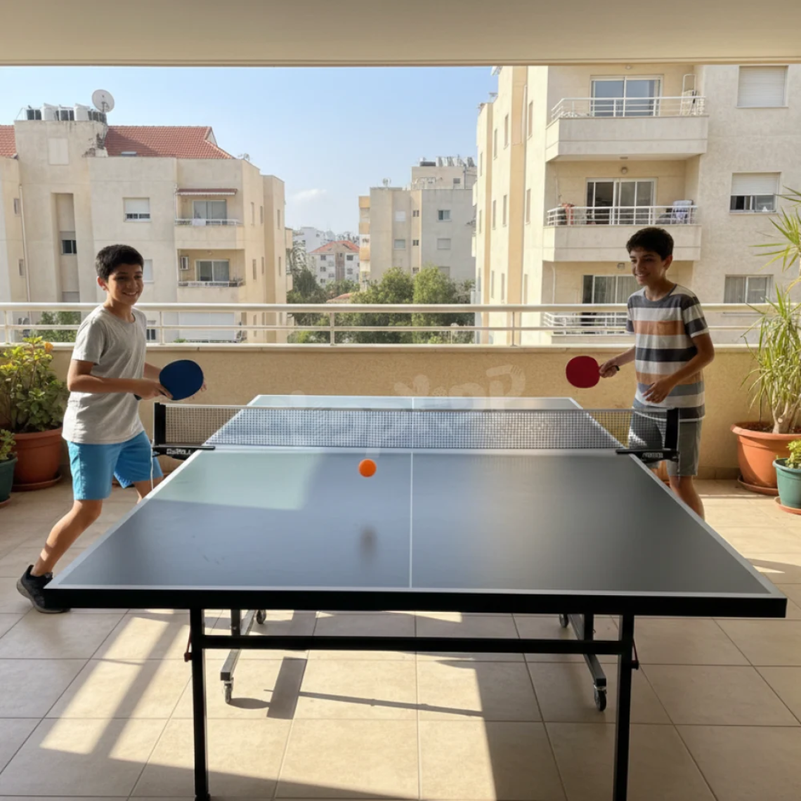 השולחן כולל פלטות עץ בעובי 15 מ"מ עם צביעה בתנור המונעת סינוור ומעניקה משטח משחק חלק ואיכותי. מבנה מתכת חזק במיוחד, רגליות פילוס ליציבות מלאה, וגלגלים עם מעצורים לניידות נוחה.