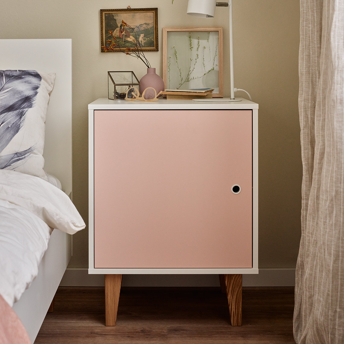 • הקבינט יכול לשמש שולחן ליד המיטה, אלמנט נוסף עבור ארון בגדים, מיכל ליד השולחן, או ארון קטן עבור פריטים כף יד.