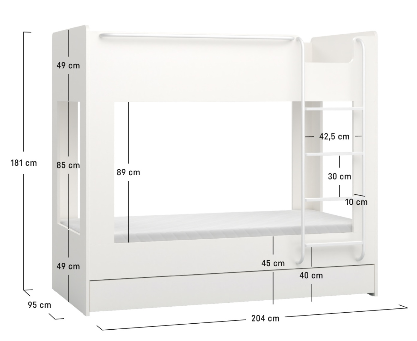 • יש להזמין בנפרד סט של 2 בסיסים ומזרנים למיטה. מטעמי בטיחות, המזרן למיטה העליונה צריך להיות בגובה של עד 18 ס"מ.