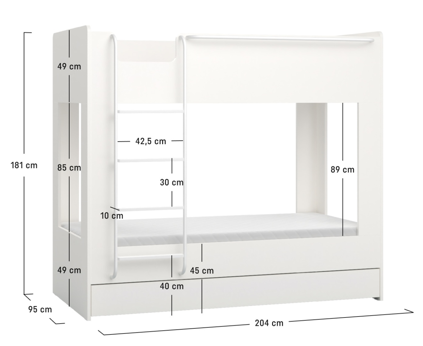 • יש להזמין בנפרד סט של 2 בסיסים ומזרנים למיטה. מטעמי בטיחות, המזרן למיטה העליונה צריך להיות בגובה של עד 18 ס"מ.