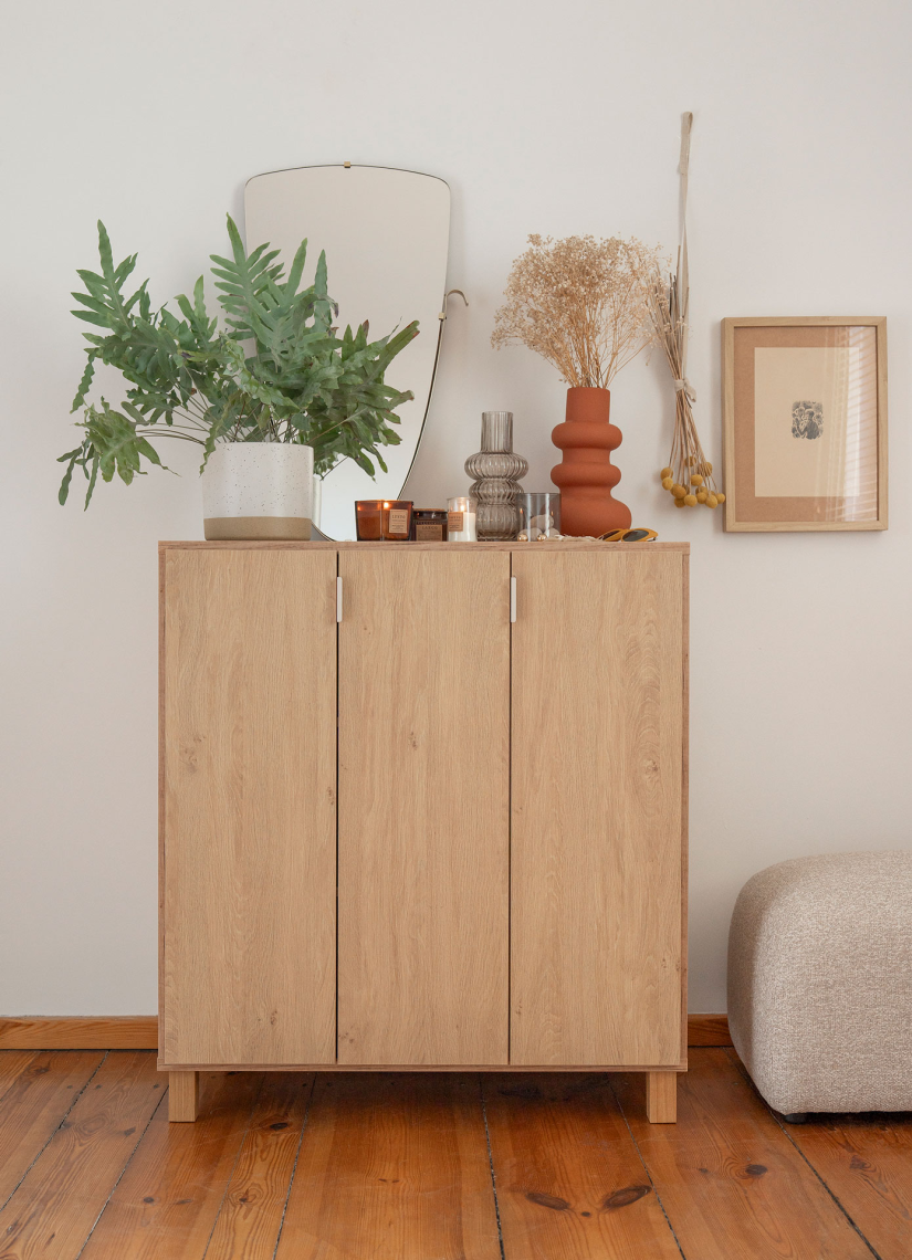 קומודה עם דלתות מקולקציית Simple מתאימה לכל חלל שבו נדרש מקום אחסון נוסף. בפינת האוכל היא תכיל אגרטלים, מפות וכלי הגשה, ובחדר השינה תשמש כארונית לבגדים ופריטים אישיים. המבנה המחולק לשני אזורים מאפשר לארגן פריטים לפי ייעוד, ואת המראה ניתן להתאים לסגנון האישי שלכם.
