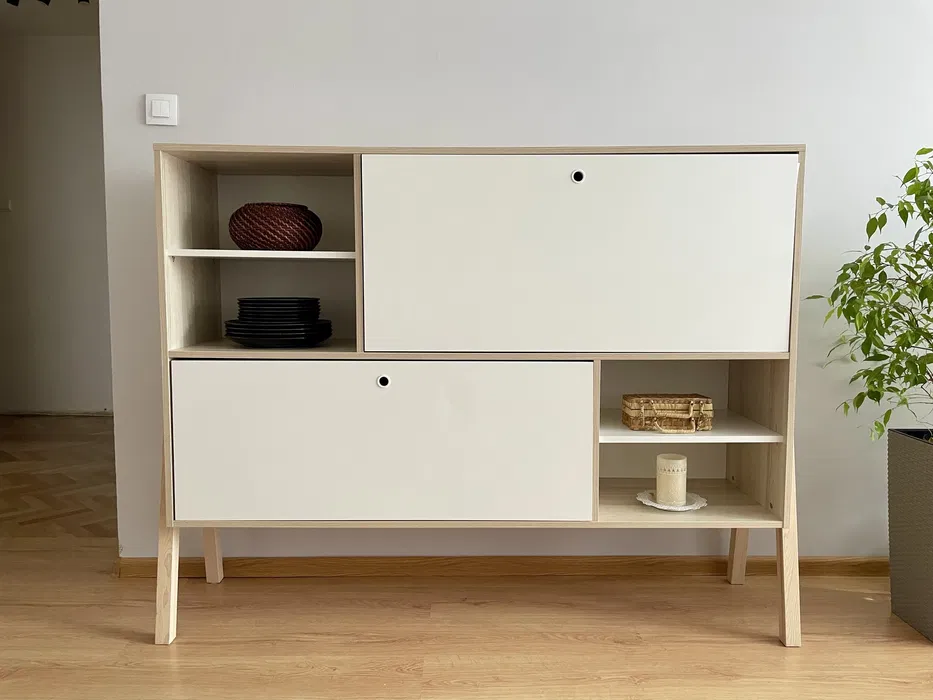 מזנון עם 2 מקומות אחסון פתוחים ו-2 סגורים. רהיטים מסדרת ספוט יקלו על הסדר בסלון או בחדר האוכל. ניתן לארגן בו בנוחות פריטים למטרות שונות.